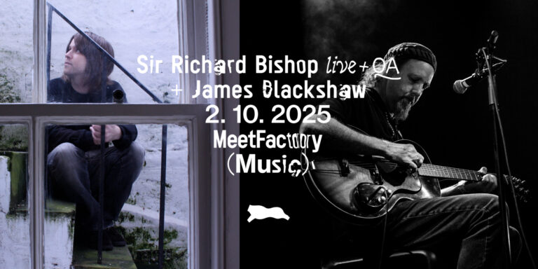 Sir Richard Bishop (live + Q&A) + James Blackshaw2. 10. 2025 – MeetFactory Primitivismus, freak folk, drone. Bezbřehé experimentování, mystika, spiritualita a okultismus. Kytaroví průkopníci Sir Richard Bishop (ex-Sun City Girls) a James Blackshaw se po letech vrací do Prahy Po ukončení činnosti kapely Sun City Girls v roce 2007 se Sir Richard Bishop etabloval […]