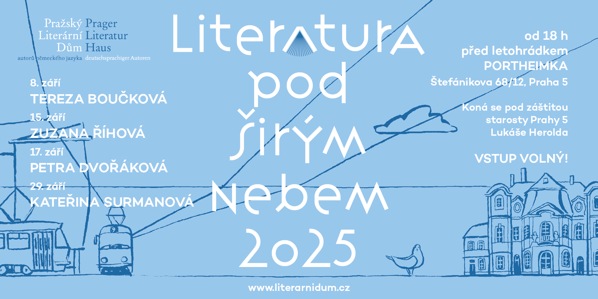 „Letos to bude dámská jízda. V pondělí 8. září 2025 se diváci budou moci setkat s Terezou Boučkovou, autorkou mnoha oceňovaných knih, která bude číst ze svého aktuálního románu Dům v Matoušově ulici. Týden poté v pondělí 15. září vystoupí Zuzana Říhová, se svým románem Rok proměny, který se zabývá nejen Franzem Kafkou ale i kafkovskou tematikou jako takovou. Na ní naváže ve středu 17. září držitelka ocenění Magnesia Litera Petra Dvořáková, která se ve své knize Návrat věnuje hlavně tématu náboženského života v klášteře a celý literární cyklus uzavře v pondělí 29. září spisovatelka, novinářka a autorka bestsellerů Kateřina Surmanová se svou novou knihou Slepé cesty,“ láká na letošní program ředitel Pražského literárního domu David Stecher.