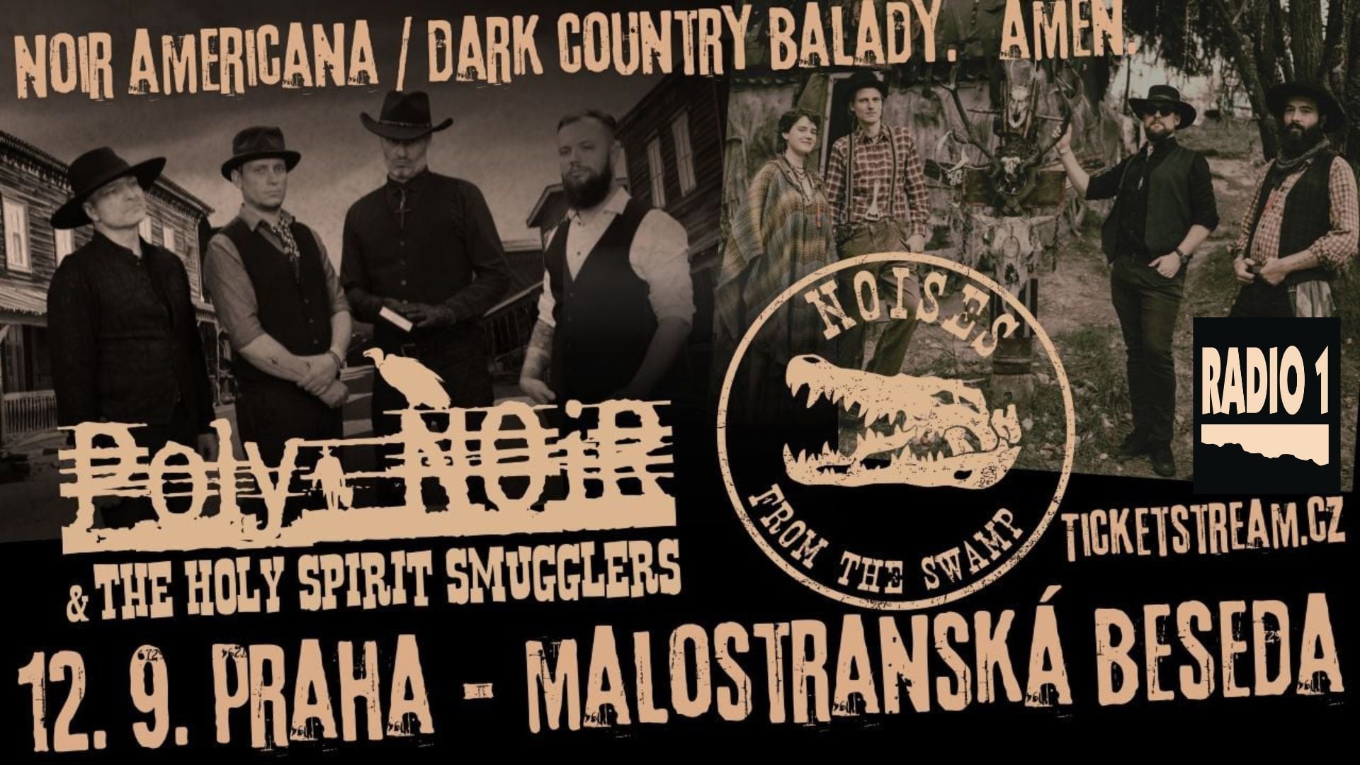 Jako hosté vystoupí NOISES FROM THE SWAMP – trash-country / gothic-americana kapela z Prahy mísící inspiraci velikány jako jsou Tom Waits nebo Nick Cave s moderní vlnou temného country. Nemají jedinou skladbu, v jejímž textu by někdo nezemřel, zato však mají skoro v každé banjo.