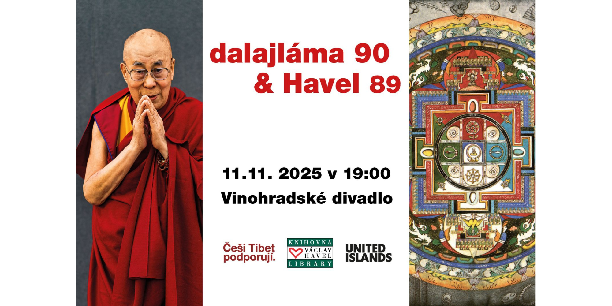 Spolek Češi Tibet podporují, Knihovna Václava Havla a United Island oznamují zahájení prodeje vstupenek na mimořádný kulturní večer Dalai Lama 90, Havel 89 – Pocta Jeho Svatosti dalajlámovi, který se uskuteční 11. listopadu 2025 od 19:00 ve Vinohradském divadle v Praze.